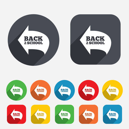 戻る学校記号アイコン 戻って 2 学校販売のシンボル サークル シャドウと枠線含むフラットなボタン ベクトルのイラスト素材 ベクタ Image