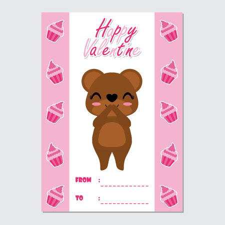 ハッピーバレンタインカードのデザイン はがき 壁紙のためのカップケーキボーダーベクトル漫画のイラストにかわいい女の子のイラスト素材 ベクタ Image